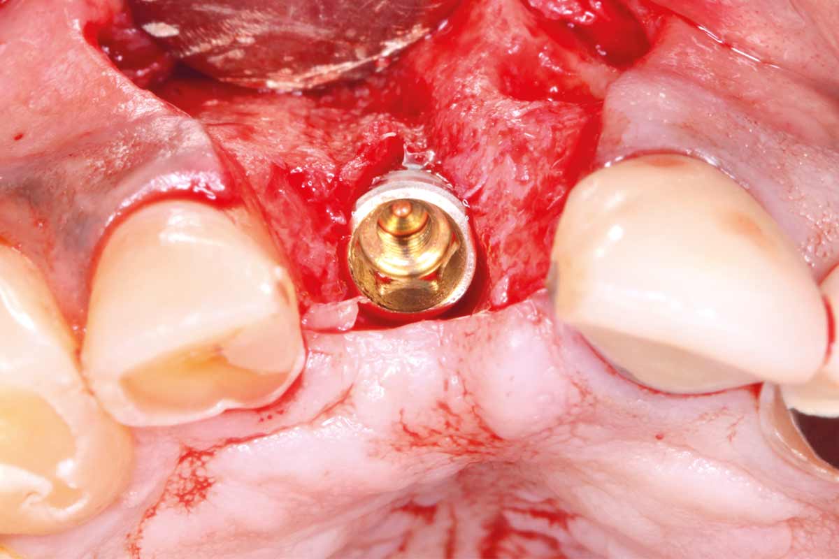 Implant placed in the deficient site. permamem® in place for covering.