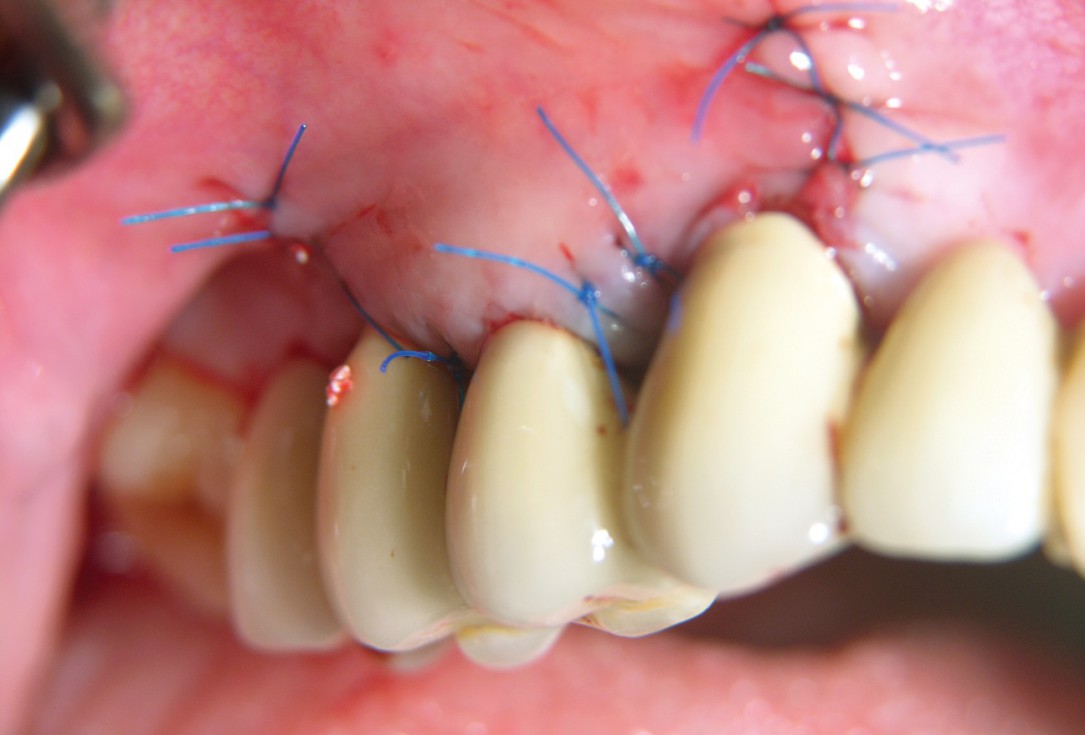 07/10 - Primary wound closure.GTR for the treatment of a deep three-dimensional intrabony defect using cerabone®, collprotect® membrane and Straumann® Emdogain® - Dr. T. Schwaar