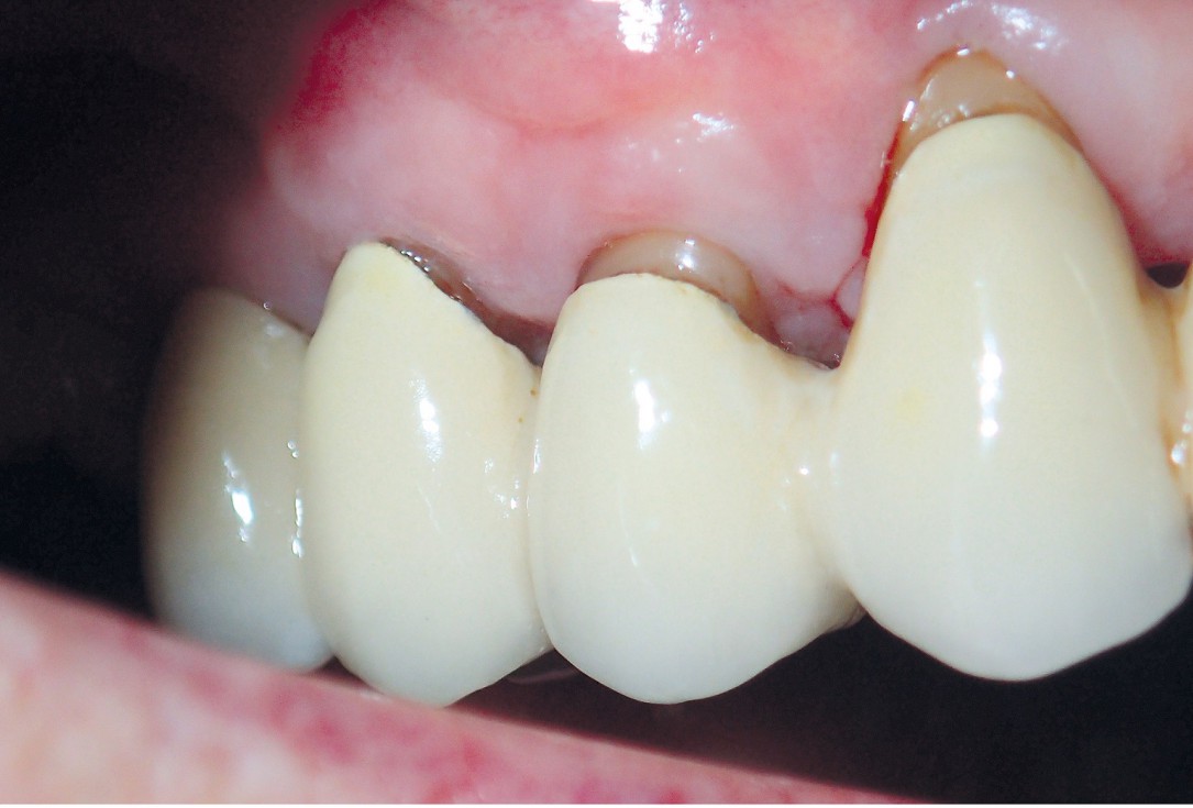 Instable bridge situation with abscess formation at tooth #15 after apicoectomy