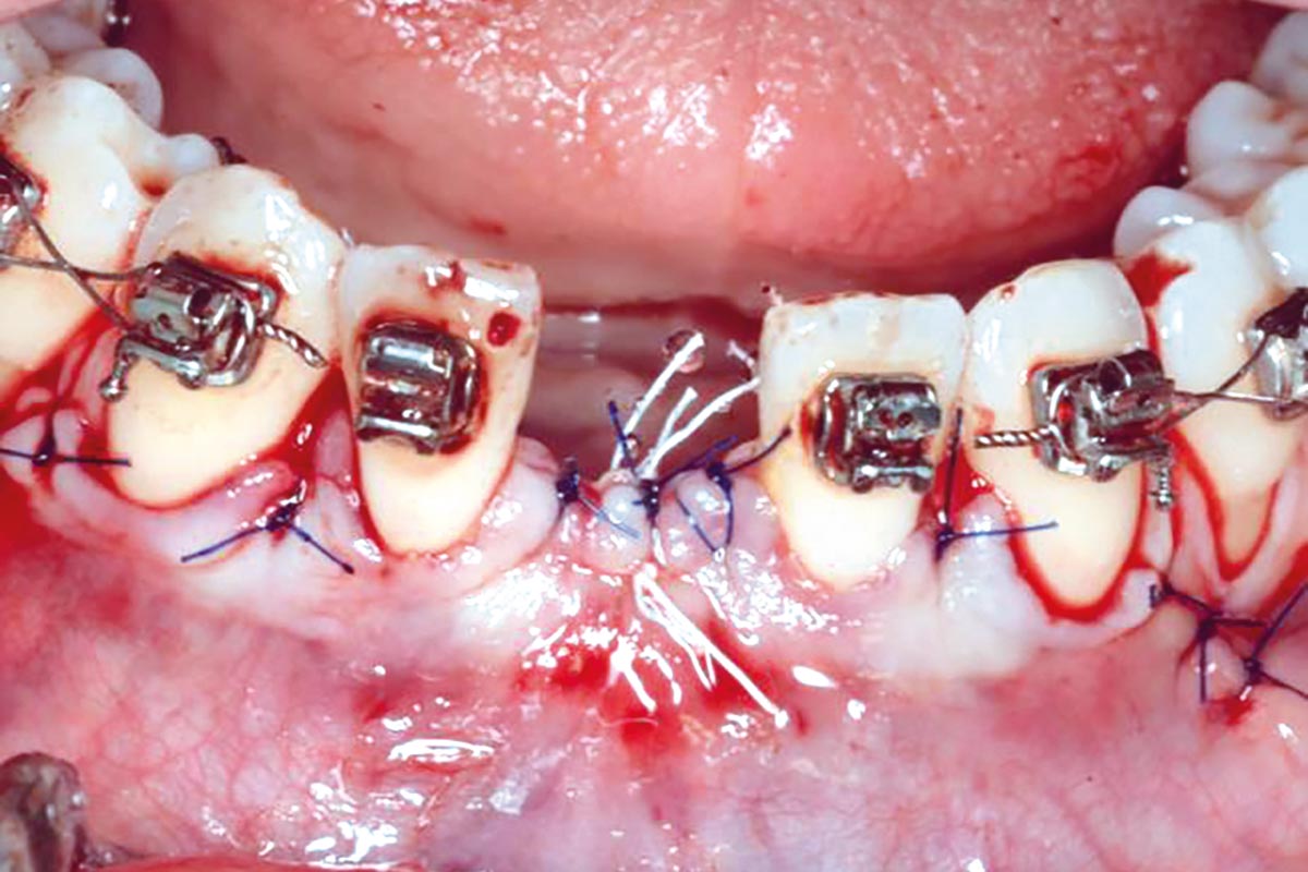 Pre-operative: loss of interdental papilla between 12 and 11 associated with gingival inflammation and pus