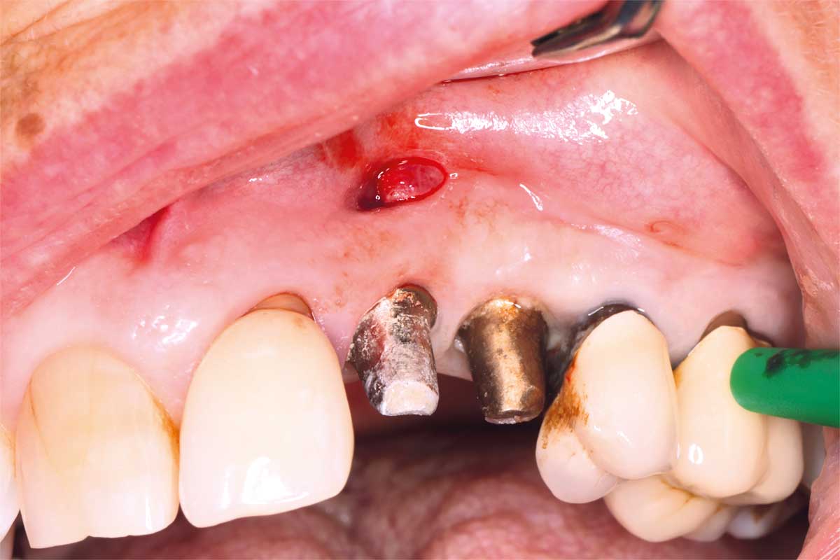 Pre-operative: loss of interdental papilla between 12 and 11 associated with gingival inflammation and pus
