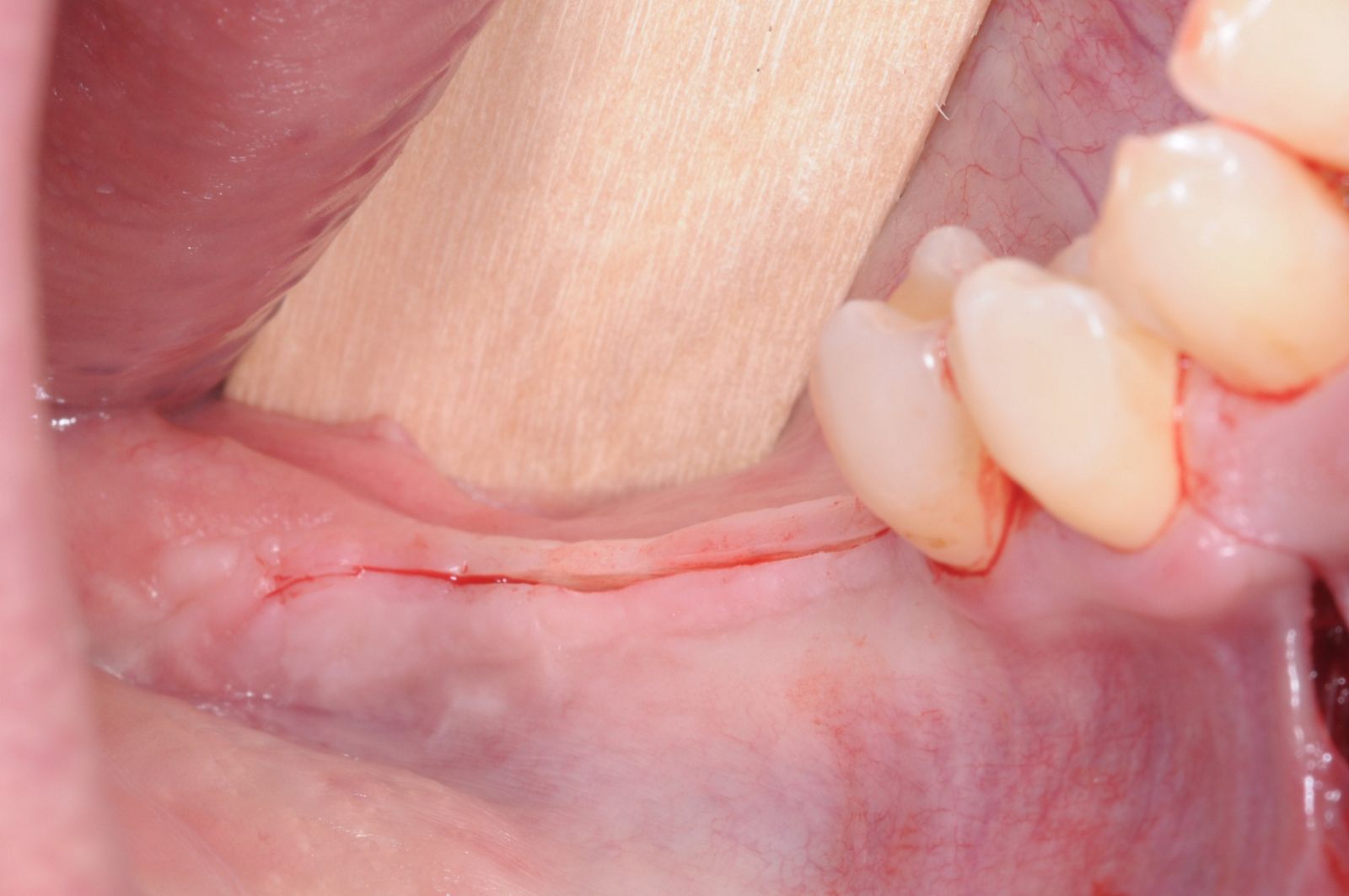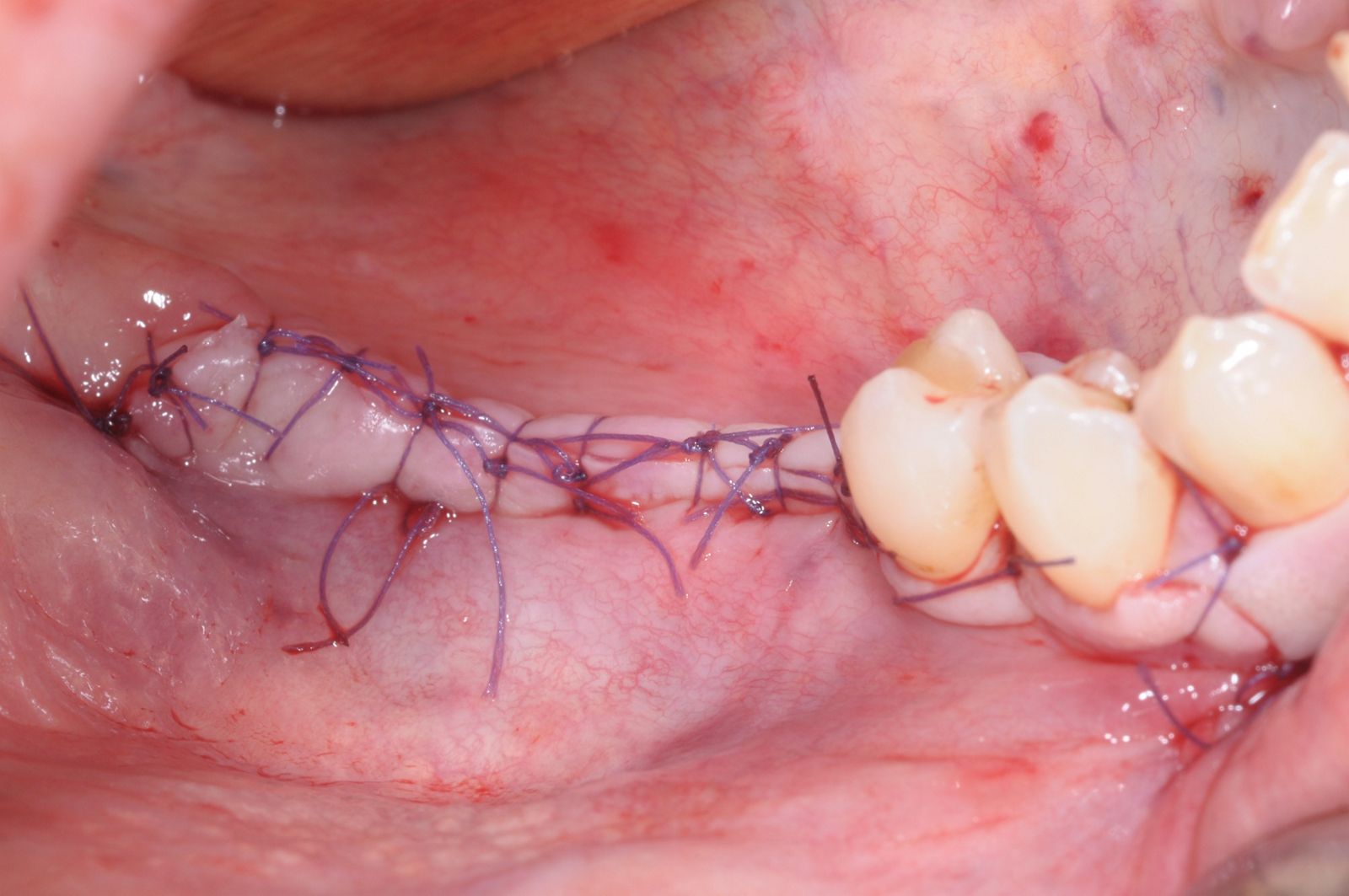 10/28 - Saliva-tight and compression-free wound closure with single-button and mattress suturesThree-dimensional augmentation with maxgraft® cortico - Dr. R. Würdinger