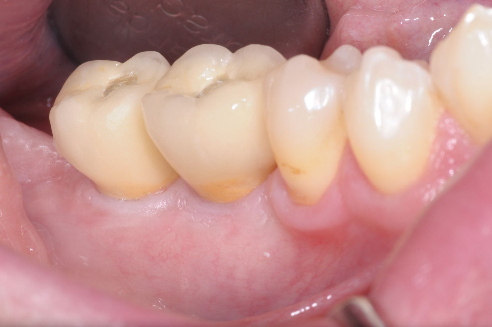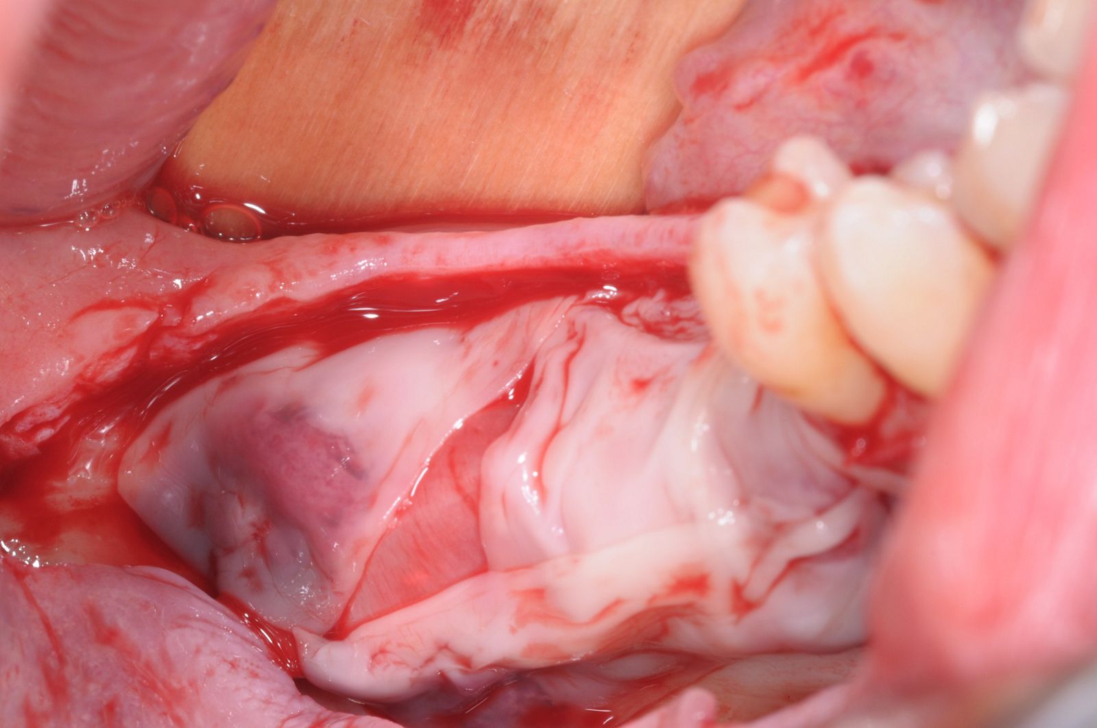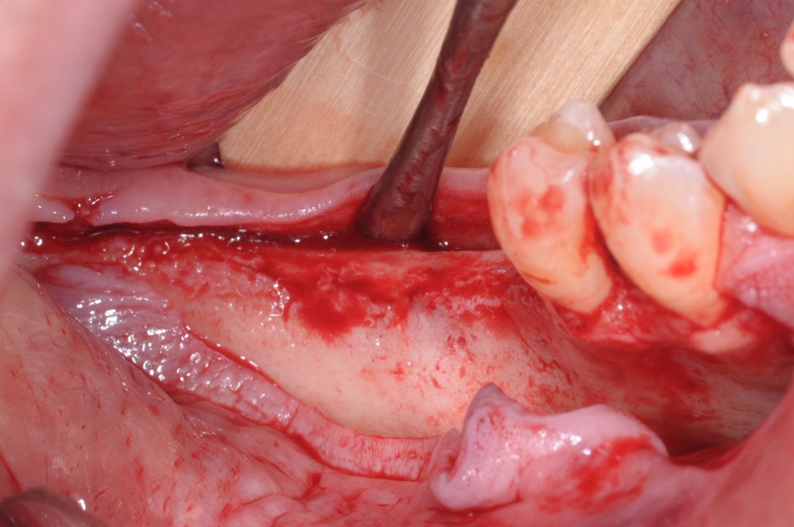 03/28 - Initial clinical situation - massive bone loss in the posterior 4th quadrantThree-dimensional augmentation with maxgraft® cortico - Dr. R. Würdinger
