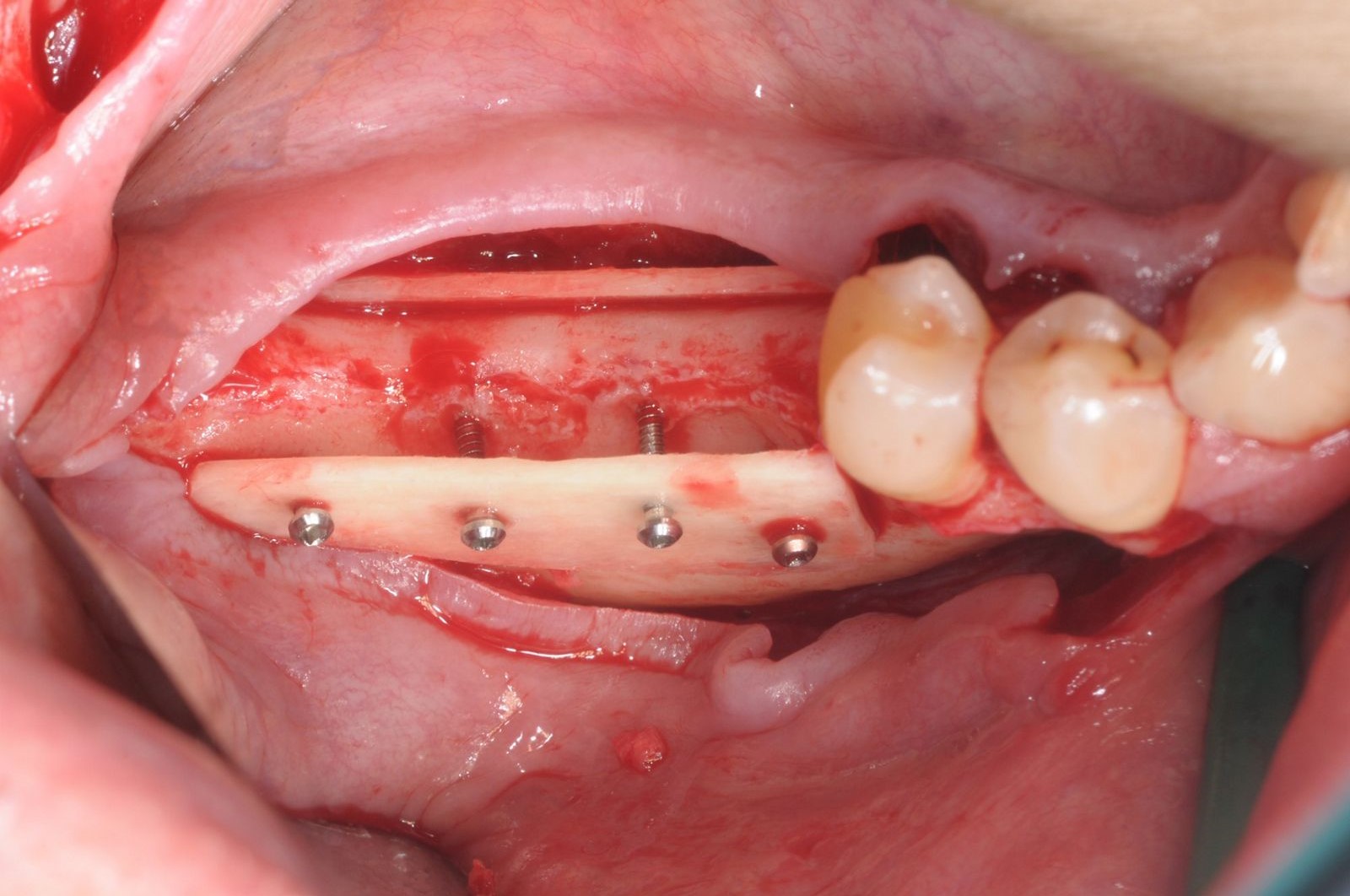 19/28 - Placement of implant cover screws in the fully submerged dental implantsThree-dimensional augmentation with maxgraft® cortico - Dr. R. Würdinger