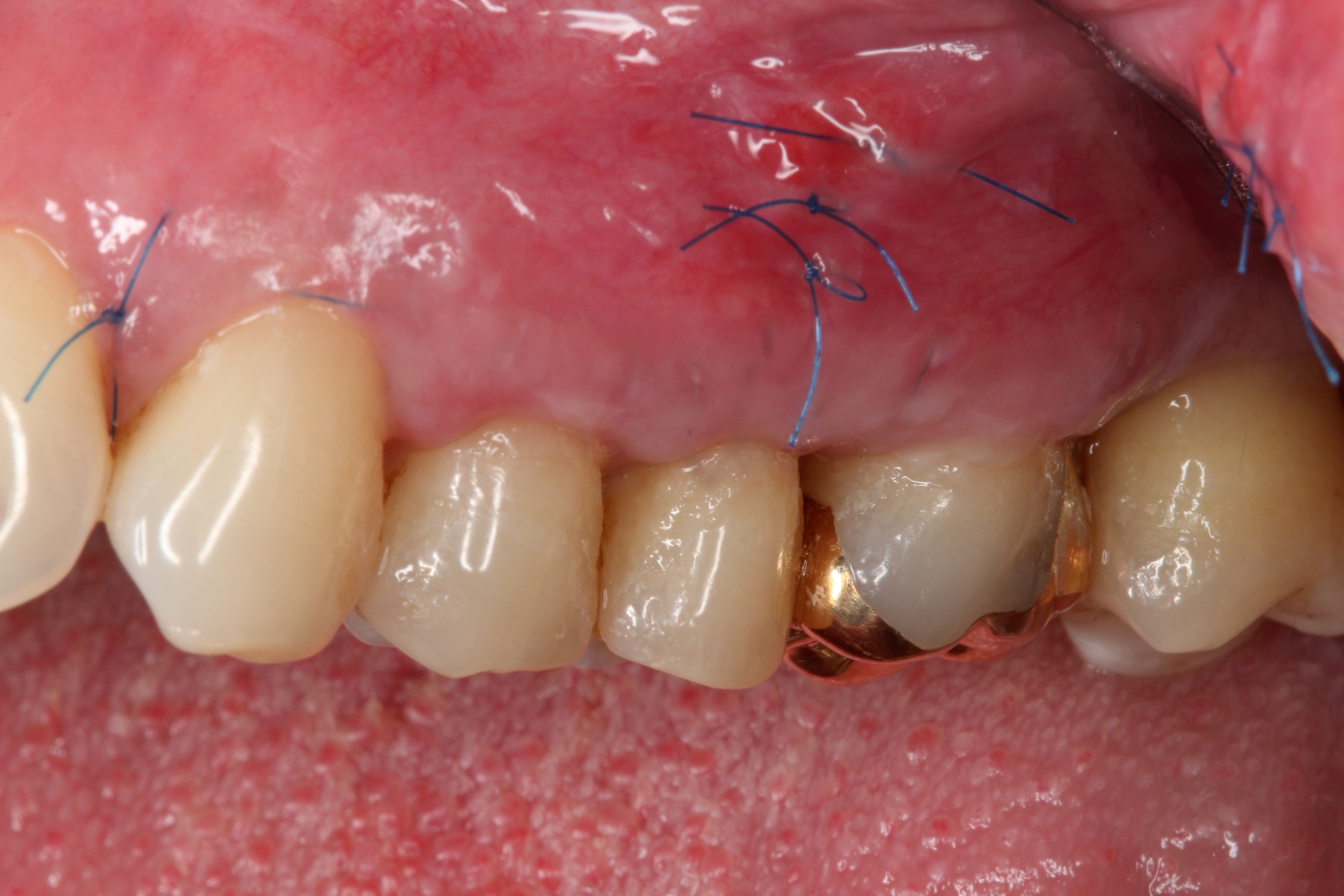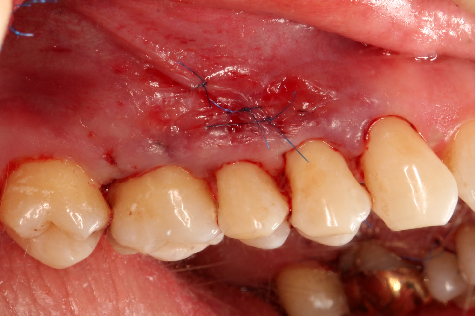 07/09 - Coronal advancement of the prepared tunnel to cover the mucoderm® matrix completely and suturing.
