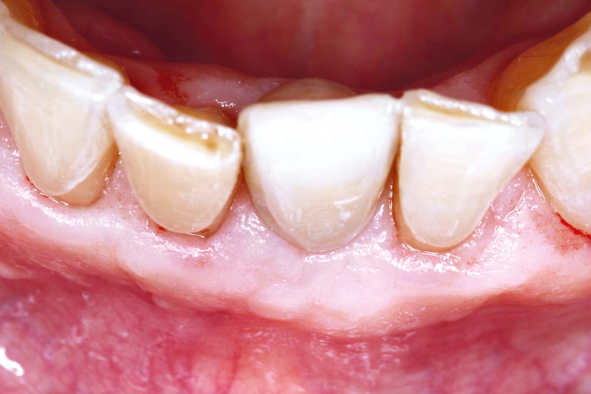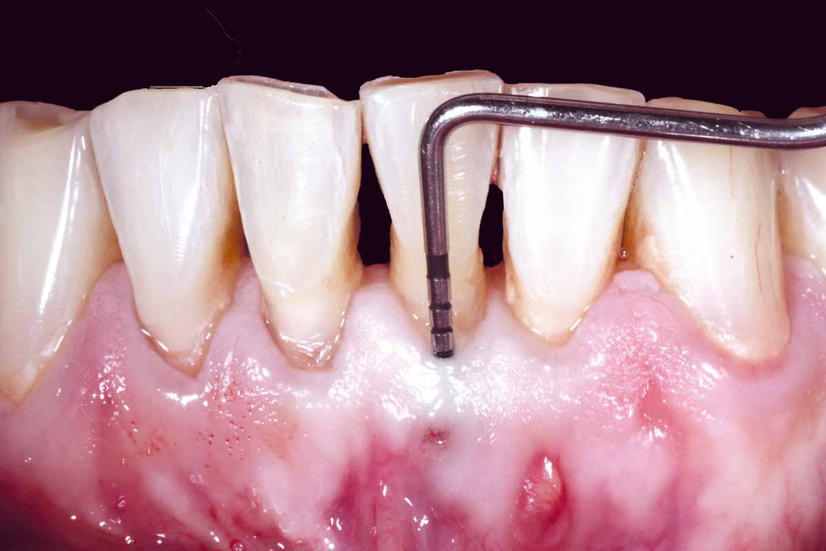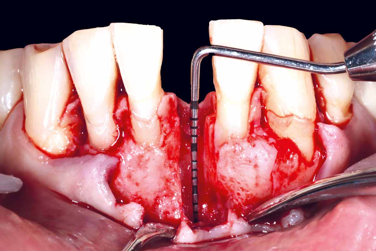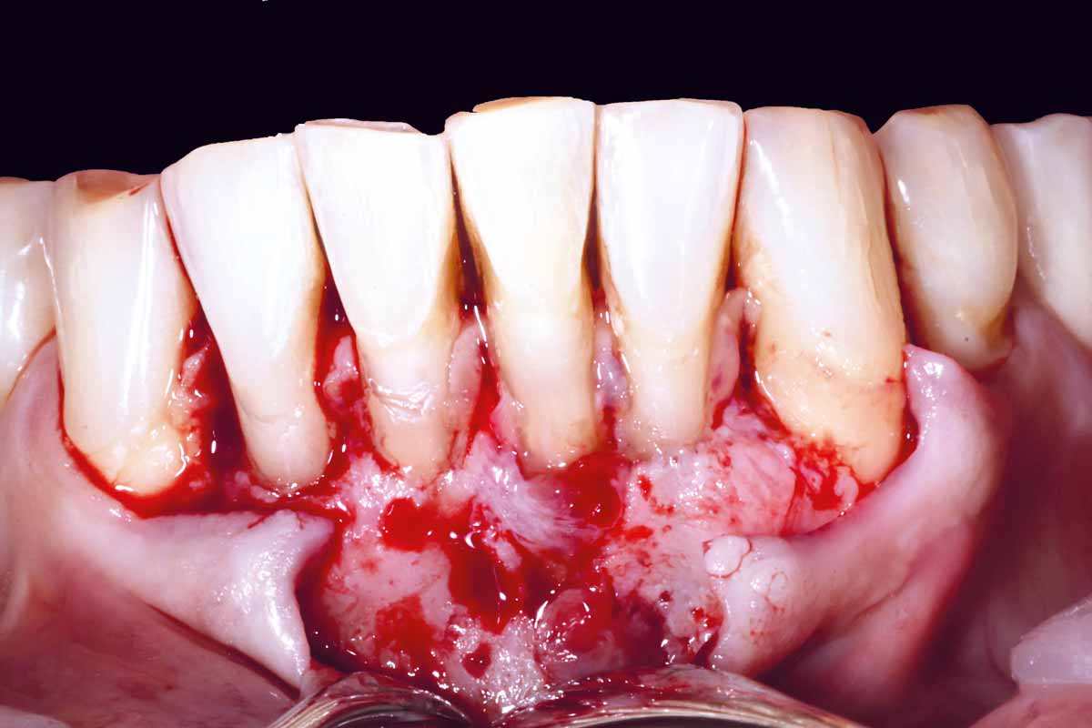 Pre-operative situation showing tooth 21 with deep periodontal pocket. Tooth presented with mobility grade III.