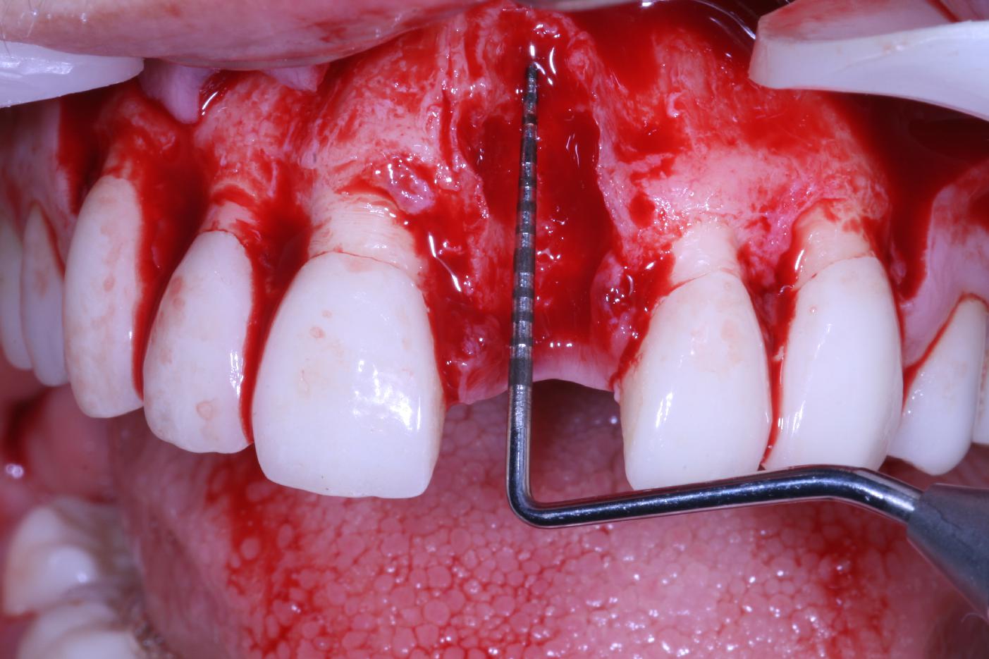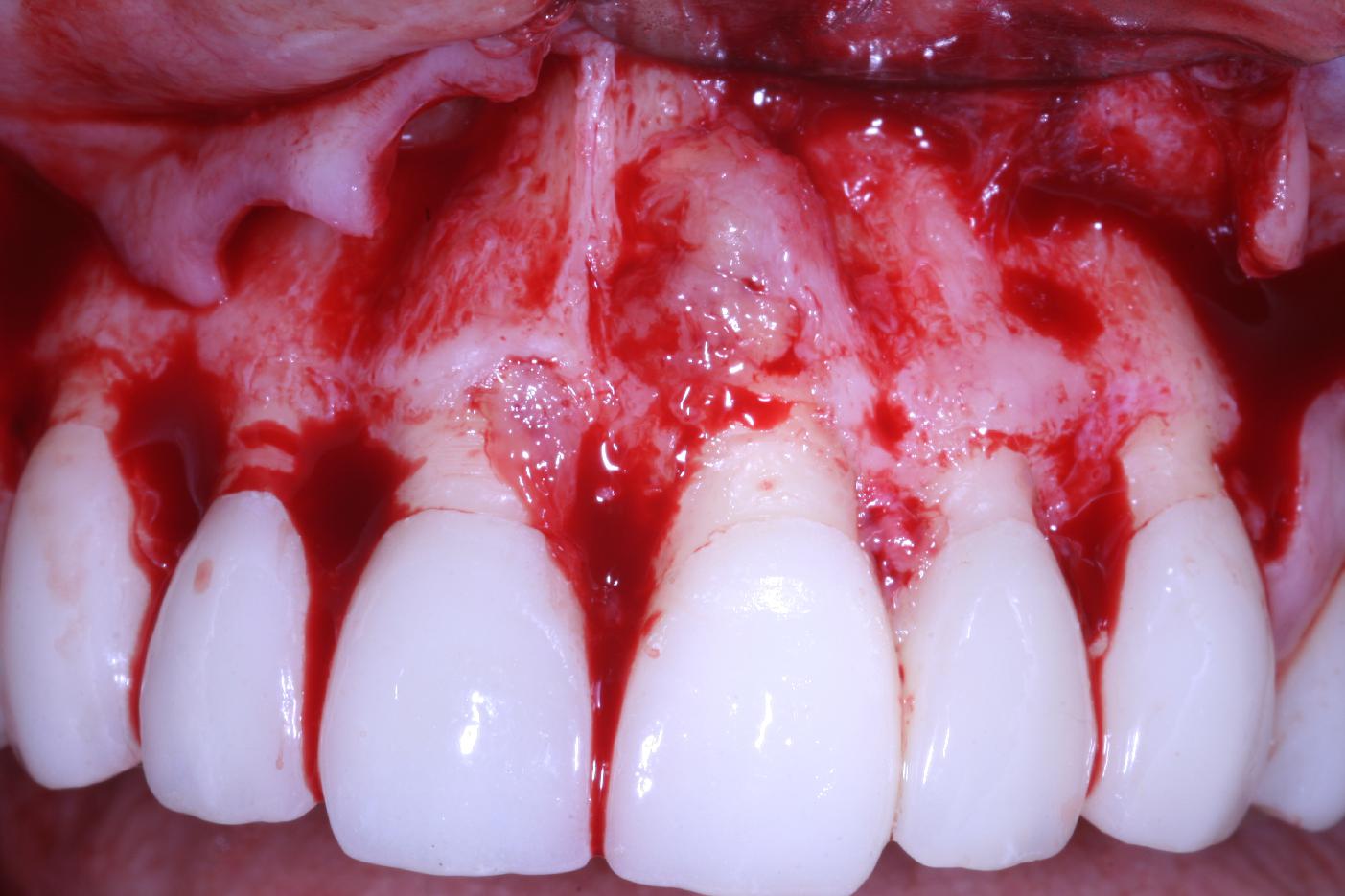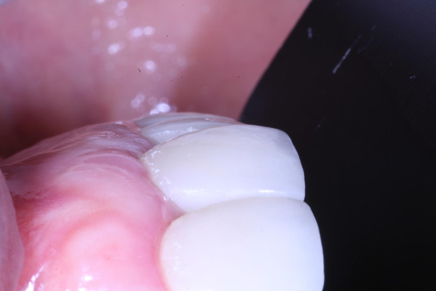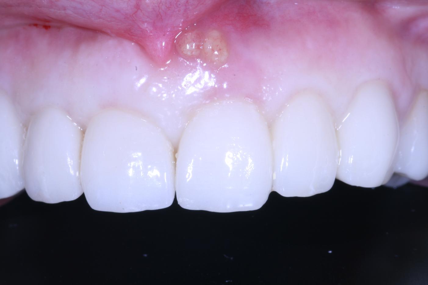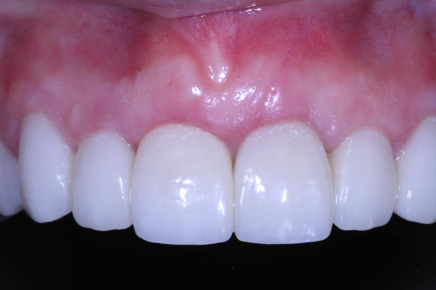 Pre-operative clinical situation: changed color in the gingiva in the front maxilla