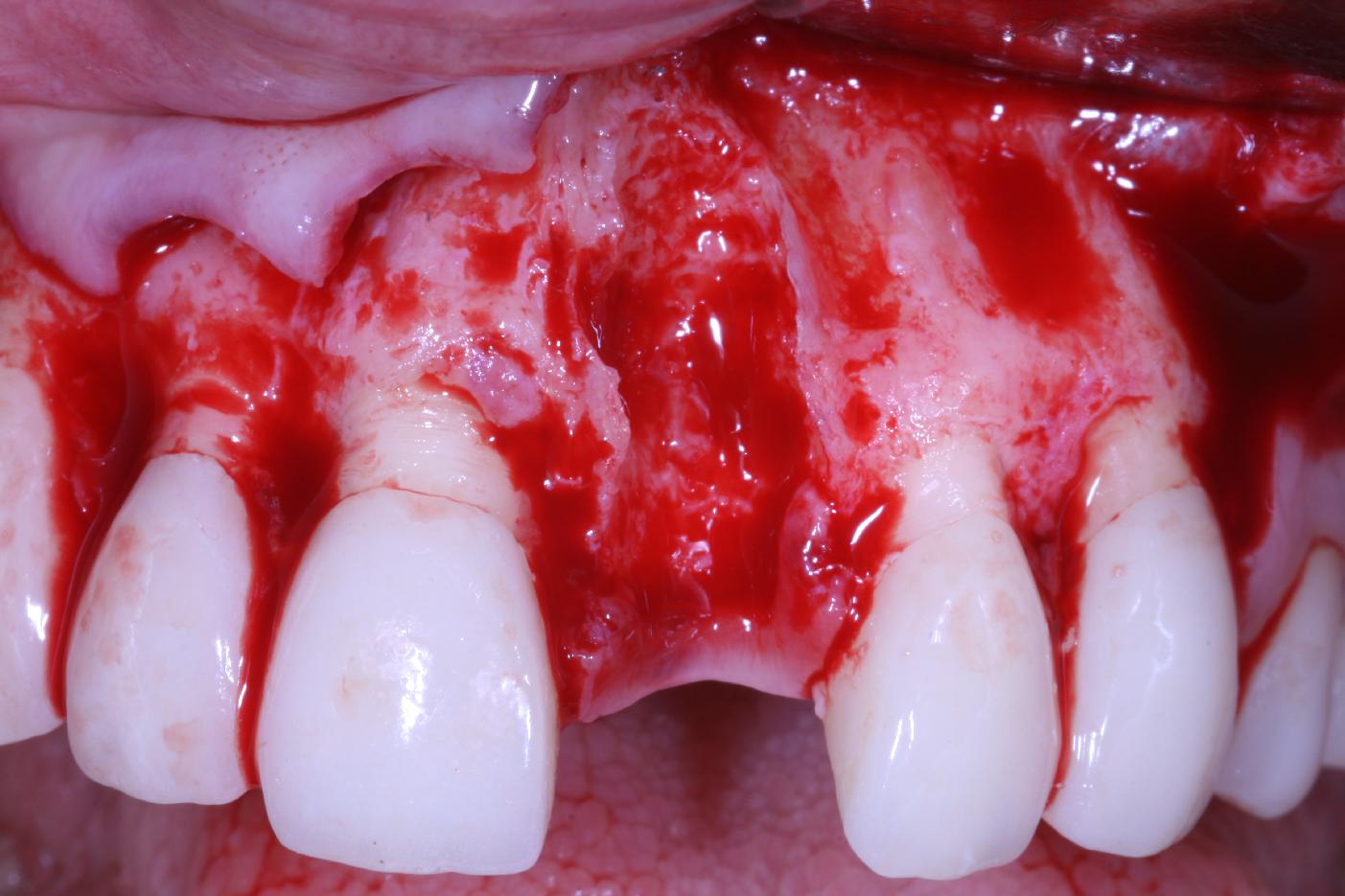 Bone defect in area 11-21 due to two lost implants (periimplantitis) after 15 years of function