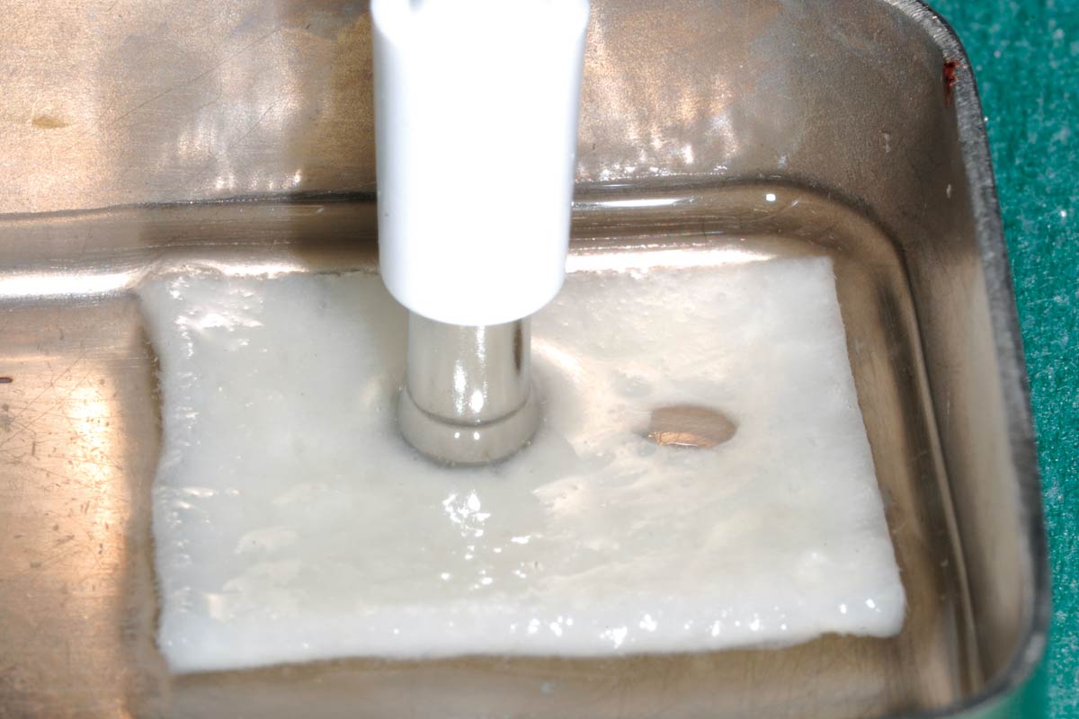 7/16 - Punching of the hydrated mucoderm®Peri-implant soft tissue thickening with mucoderm® - Dr. F. Rojas-Vizcaya