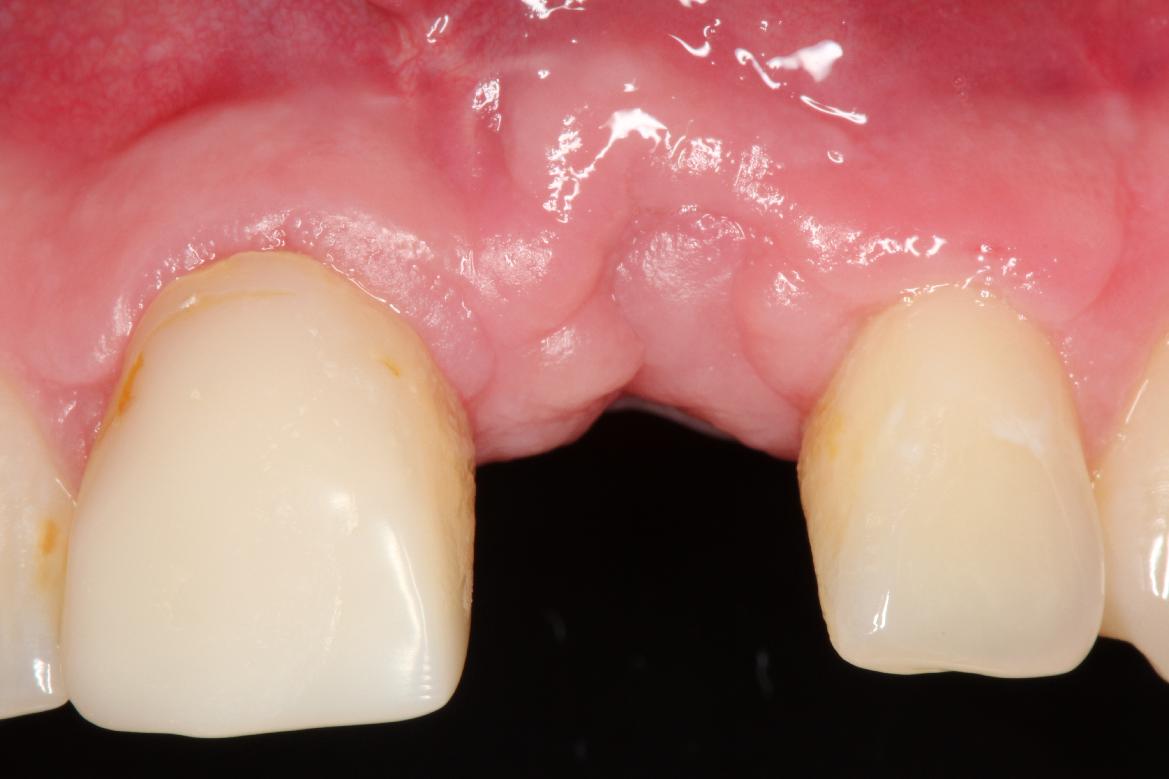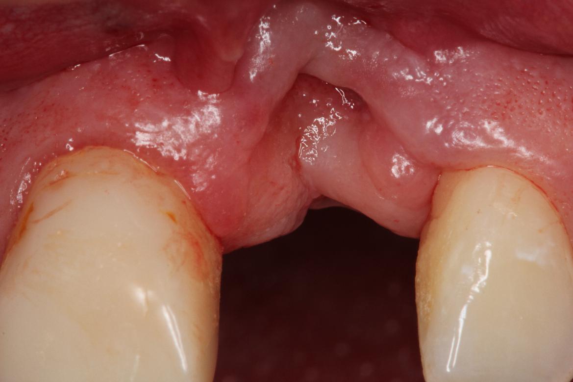 Initial situation before surgery. Patient lost central incisors 1 month ago due to endodontic failures